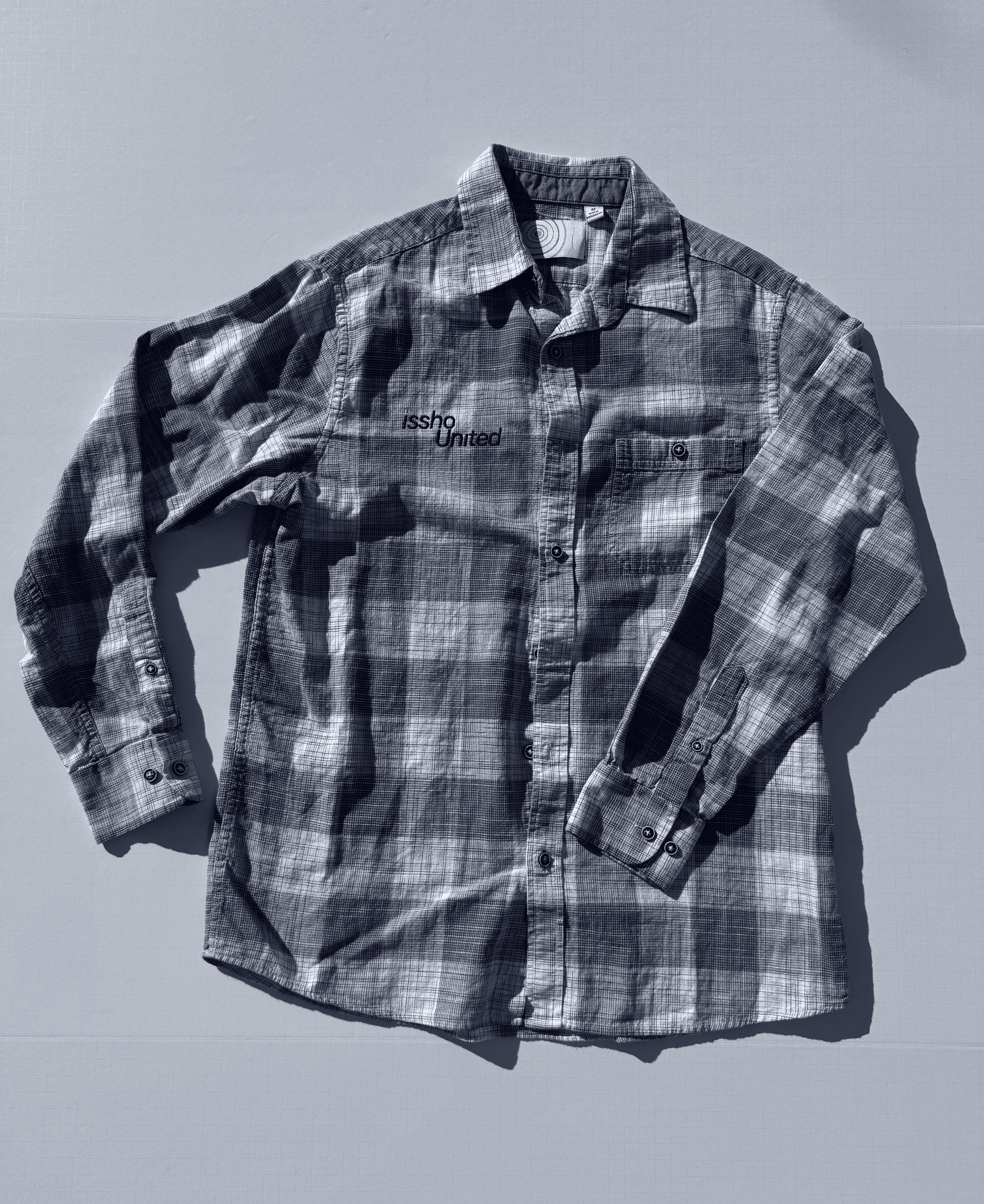 For these shirts we curated a collection of approximately 30 shirts through 3 sizing options (S,M,L) and embroidered our classic ‘issho United’ logo across the chest. Some in black and some in our signature purple, all shirts are different styles and patterns sustainability sourced.